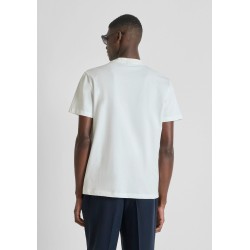 Camiseta regular fit para hombre de logo en el pecho a contraste, cuello redondo y manga corta.