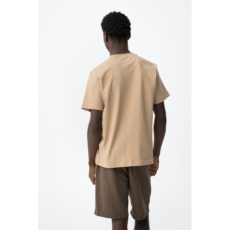 Camiseta de corte regular, manga corta y cuello redondo, estilo minimalista y casual.
