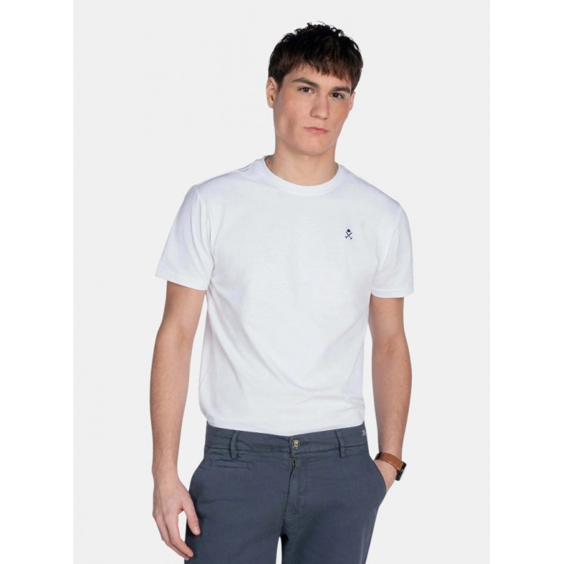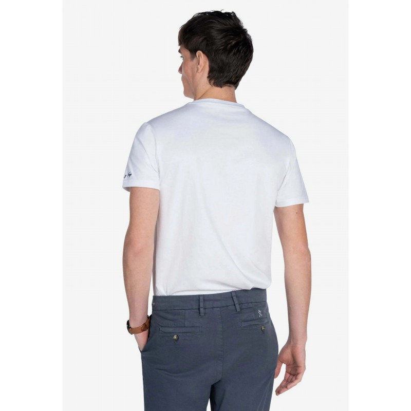 Camiseta regular fit transpirable para hombre de cuello redondo, logo bordado en el pecho y detalle en una de sus mangas cortas. Perfecto para ambientes náuticos y clubes costeros.