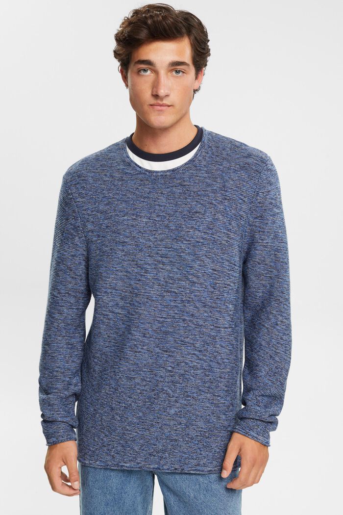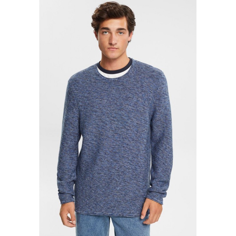 Jesey de punto con efecto jaspeado en tejido de algodón sostenible. Escote redondo y bordes enrollados.