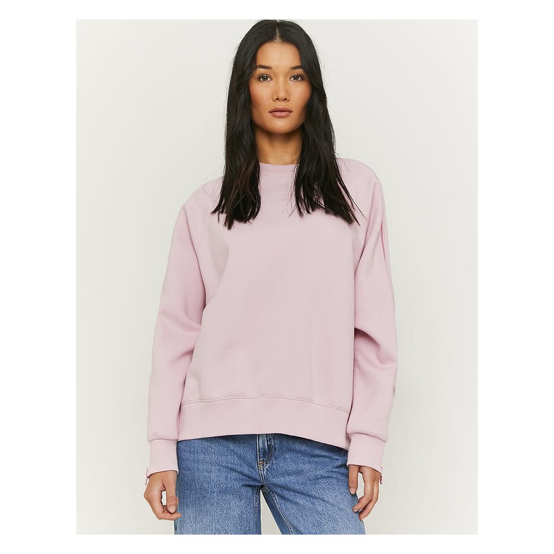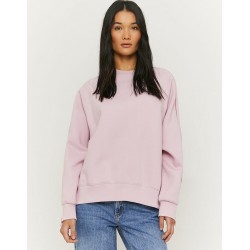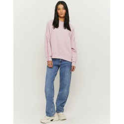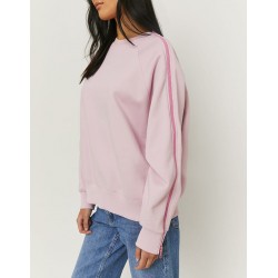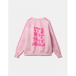 Jersey oversize de felpa con cuello redondo y manga larga. Liso por delante y serigrafiado por detrás.