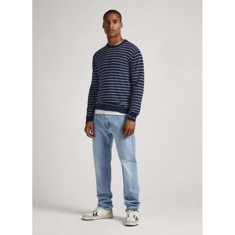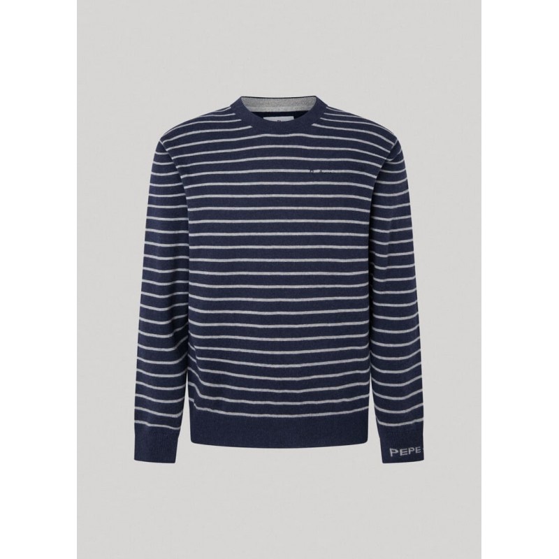 Jersey de cuello redondo y manga larga con estampado e rayas horizontales. Detalle de canalé en cuello, puños y bajo. Logo de Pepe Jeans en tejido jacquard en los puños y logo bordado Pepe Jeans al lado izquierdo del pecho.