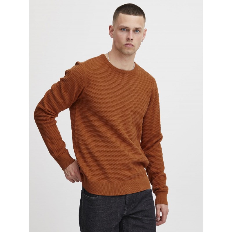 Jersey de punto de arroz de manga larga y cuello redondo.