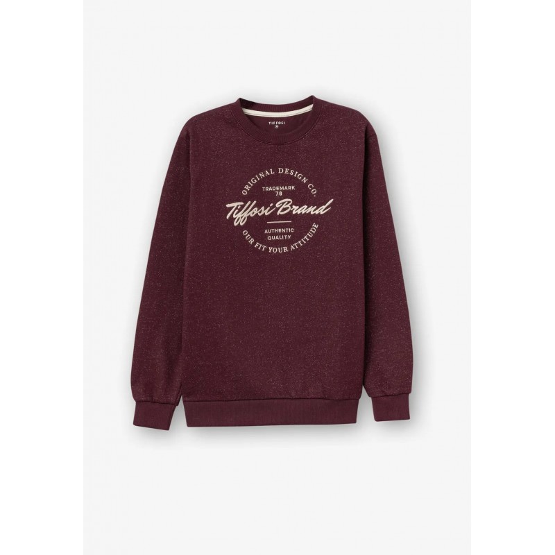 Jersey regular fit cardada con cuello redondo y manga larga. Texto bordado frontal. Terminaciones de canalé.