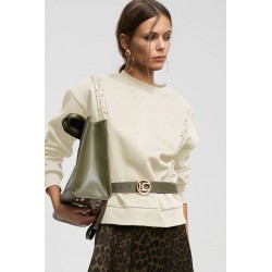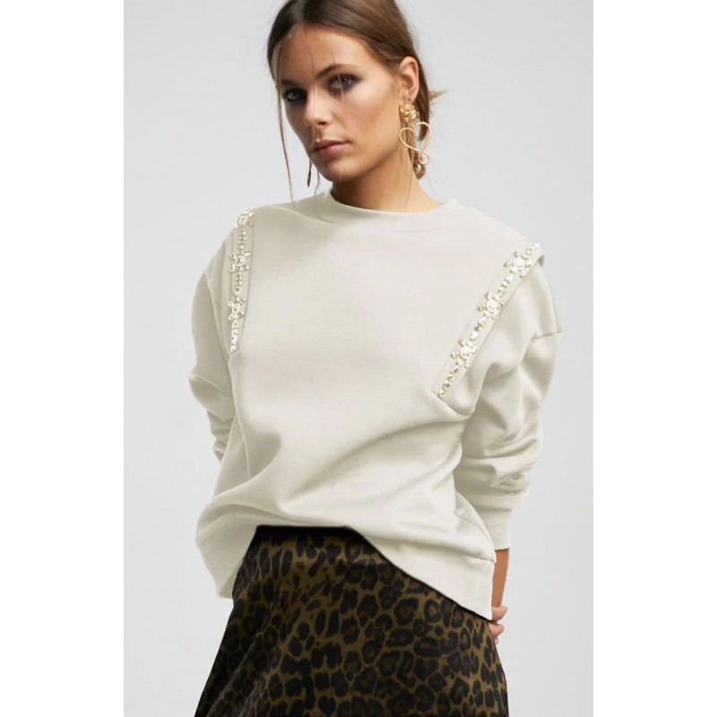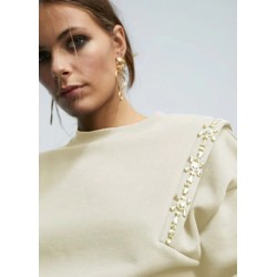 Sudadera con detalle de pedrería para mujer. Cuello caja y manga caída.