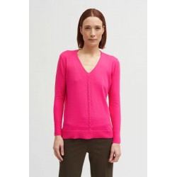 Jersey basico de punto fino para mujer.Cuello pico. Diseño recto. Manga larga. Bajo recto con aberturas laterales.