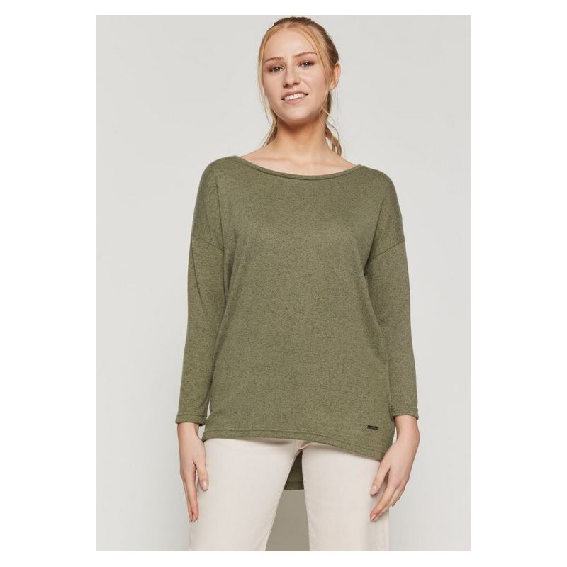 Jersey liso para mujer de cuello redondo y manga larga.