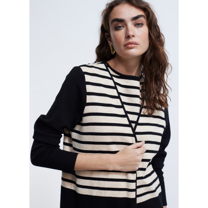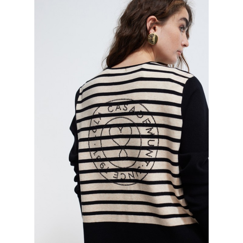Cardigan estampado para mujer.Largo. Bolsillos plastrón y aberturas laterales en bajo. Logo con piedras strass a tono en espalda.