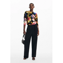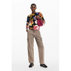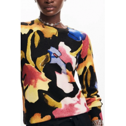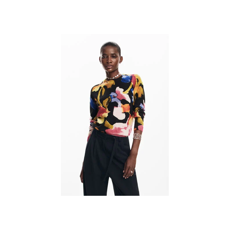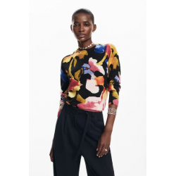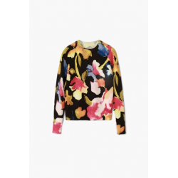 Jersey loose fit de cuello redondo, estampado de grandes flores arty y mangas largas.