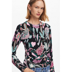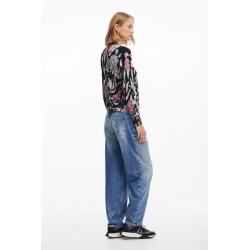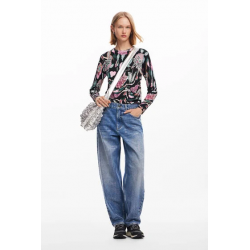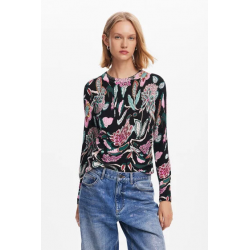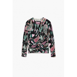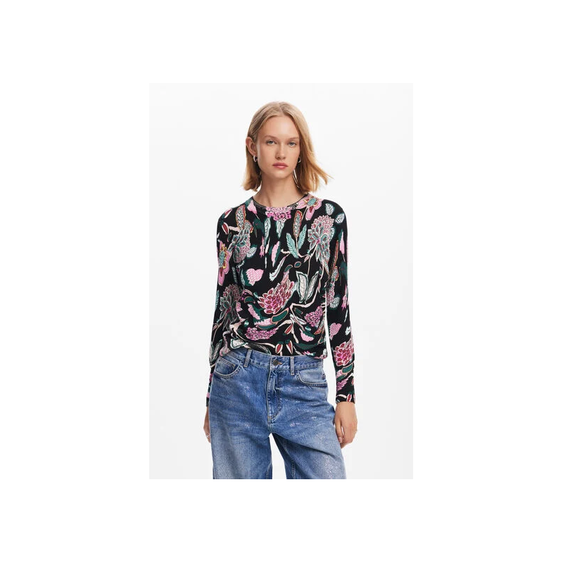 Jersey regular fit para mujer de estampado de diversos motivos botánicos oníricos, cuello redondo y manga larga.