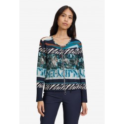 Cárdigan estampado para mujer de cierre de cremallera, cuello redondo y mangas largas.