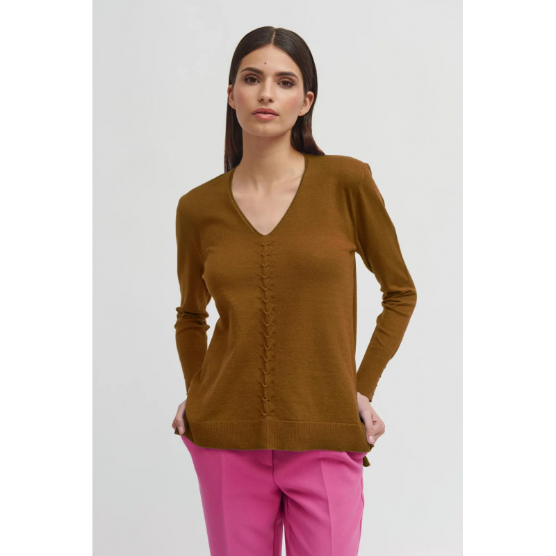 Jersey liso de punto fino para mujer.Cuello pico. Diseño recto. Manga larga. Bajo recto con aberturas laterales.