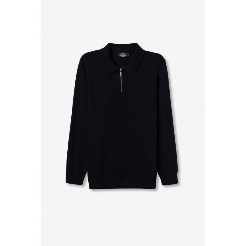 Jersey de punto fino para hombre. Cuello Semicisne. Detalle de cremallera en el cuello. Regular Fit.