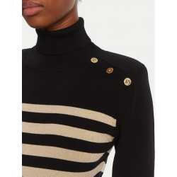 Jersey de punto para mujer. Cuello alto. Corte regular. Detalles botones metálicos.