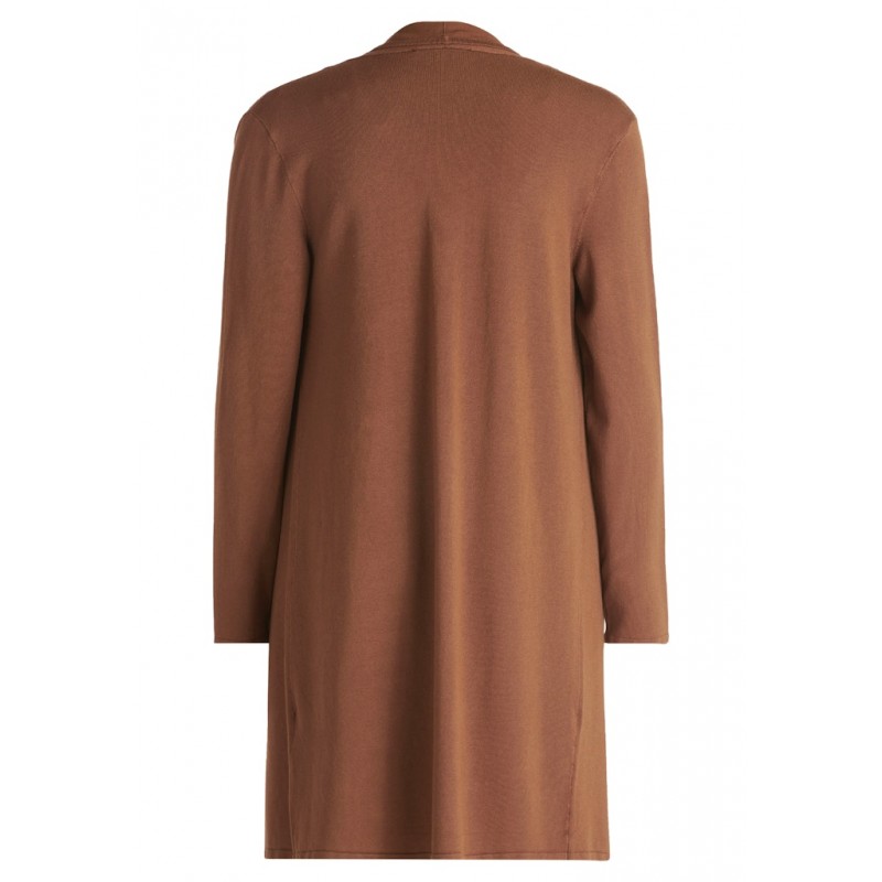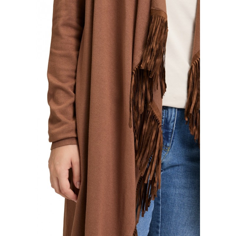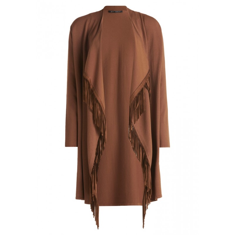 Cardigan largo de punto para mujer. Diseño liso. Con flecos.