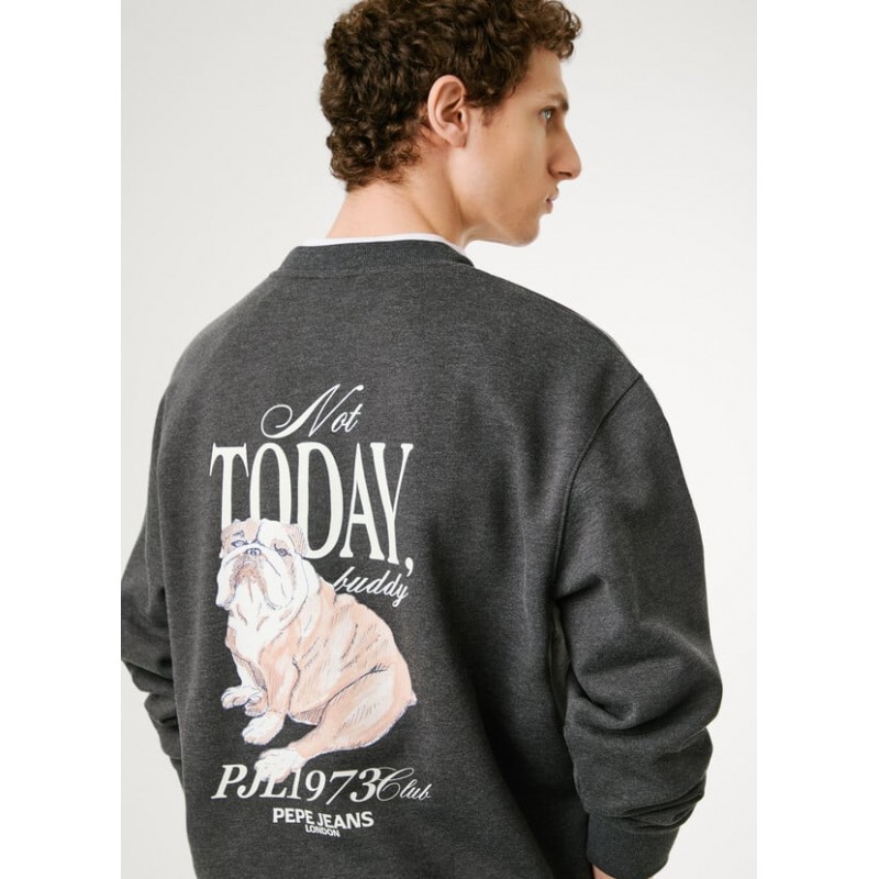 Sudadera basica para hombre. Cuello redondo. Fit relaxed. Gráfico de perro tamaño maxi estampado en la espalda.