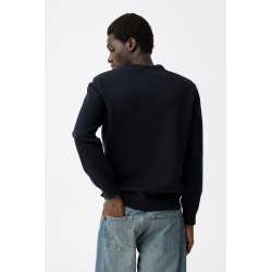 Jersey de punto texturizado para hombre. Patrón de punto en frente y mangas lisas. Cuello redondo. Puños y bajo en rib.