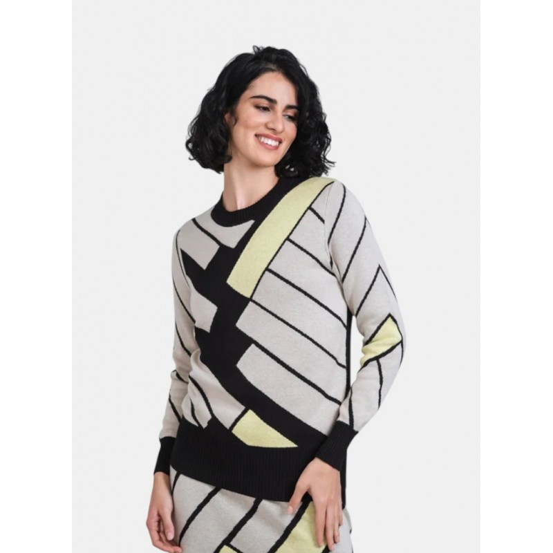Jersey estampado para mujer de cuello redondo, bajo y mangas largas acanaladas a contraste.