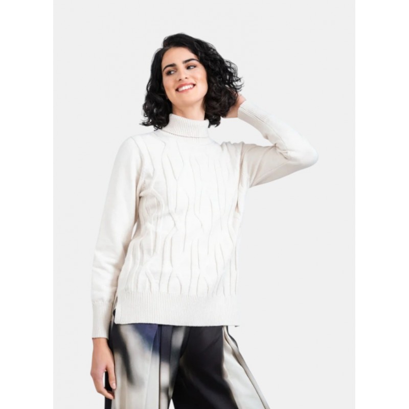 Jersey cuello alto para mujer de diseño de patrón de punto trenzado y de manga larga.