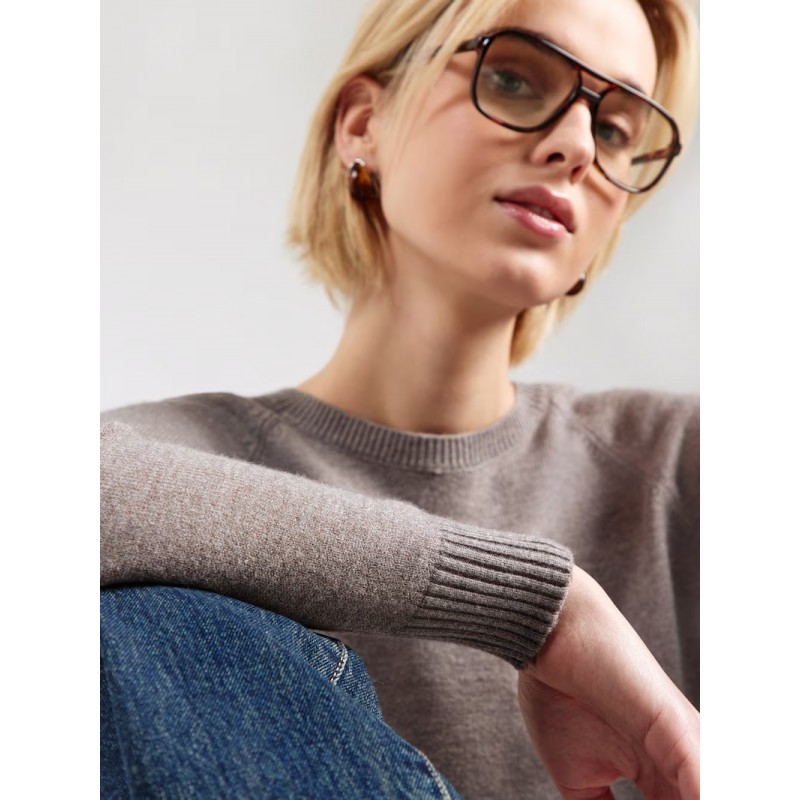 Jersey básico para mujer, cuello redondo y manga larga.