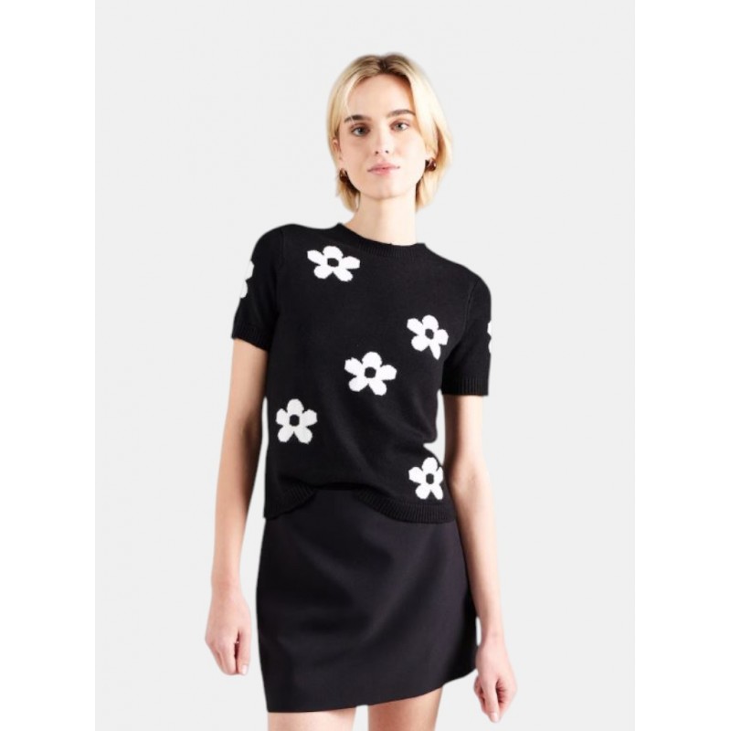 Jersey de estampado flores para mujer, cuello redondo y manga corta.