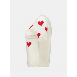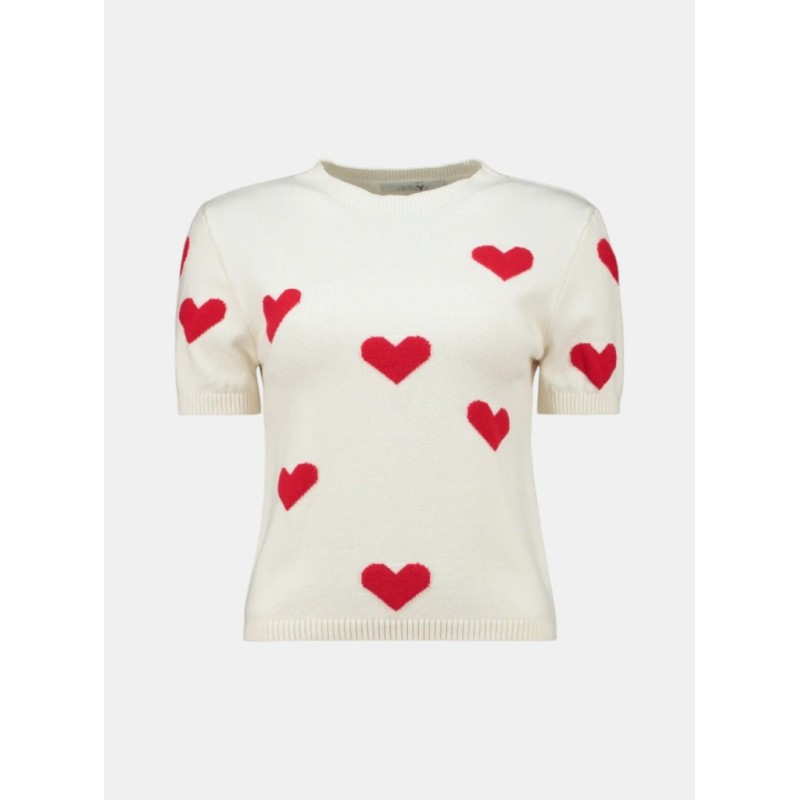 Jersey para mujer de estampado de corazones, cuello redondo y manga corta