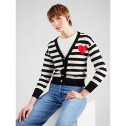Cárdigan para mujer de escote en V, cierre de botones decorativos, estampado de tayas con un corazón y mangas largas.