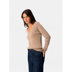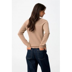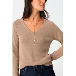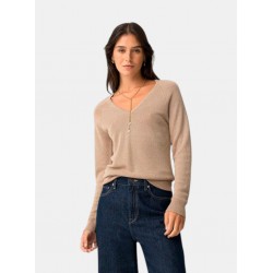 Jersey de punto para mujer. Slim fit con hilo metálico insertado, escote en V, manga larga y acabados de canalé.