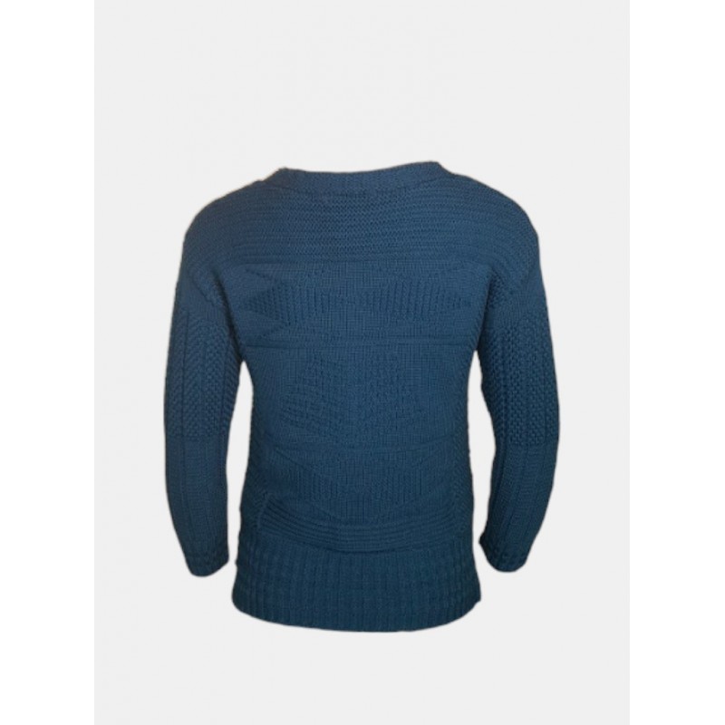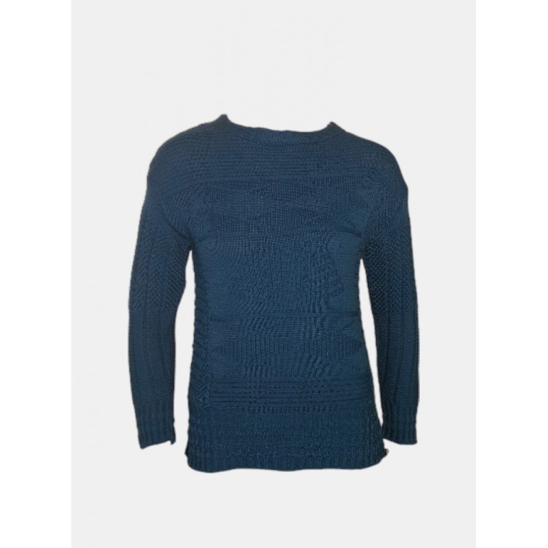 Jersey de punto liso, cuello redondo, recto con detalles en frontal y puños y manga larga.