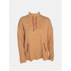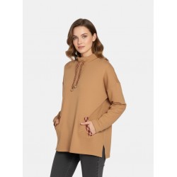 Sudadera para mujer de cuello alto con cordón ajustable de estampado de cuadros, bolsillos con ribete estampado a juego y mangas largas.