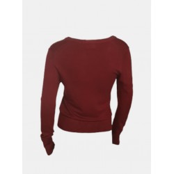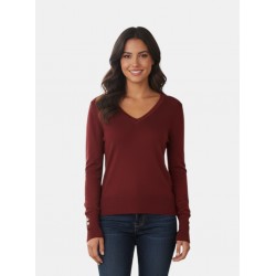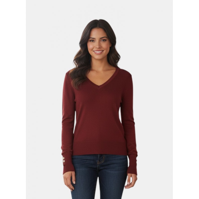 Jersey para mujer de cuello redondo y mangas largas con diseño de tres botones metálicos.