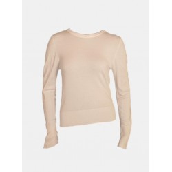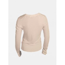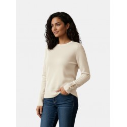 Jersey para mujer de cuello redondo y mangas largas con diseño de tres botones metálicos.