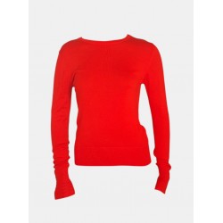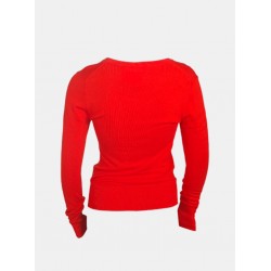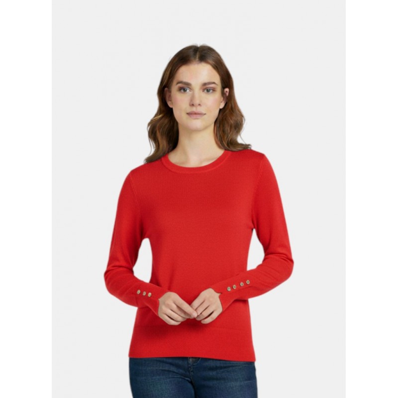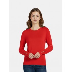 Jersey para mujer de cuello redondo y mangas largas con diseño de tres botones metálicos.