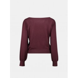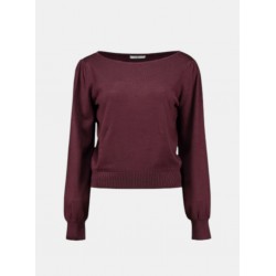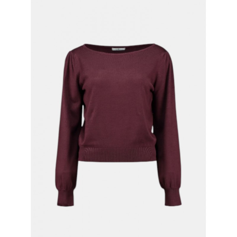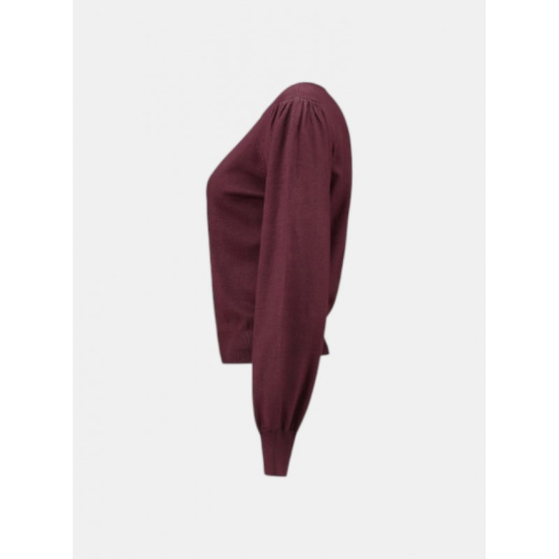 Jersey liso para mujer de cuello barco, hombros fruncidos y puños de sus mangas largas elástico.