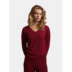 Jersey liso para mujer de cuello pico con detalles de tachuelas y manga larga.