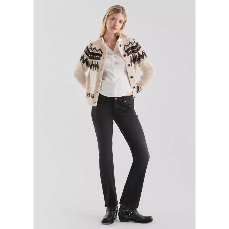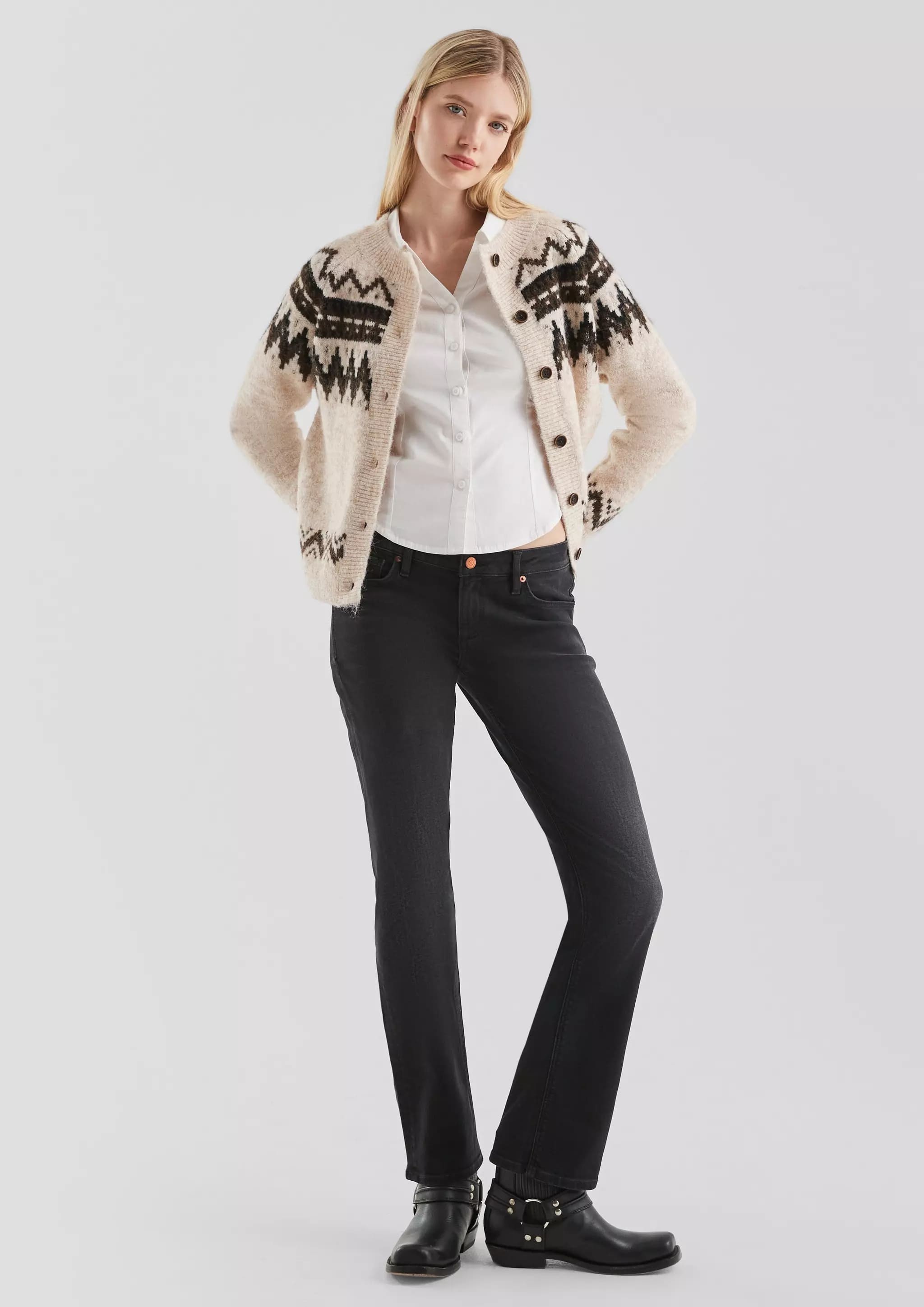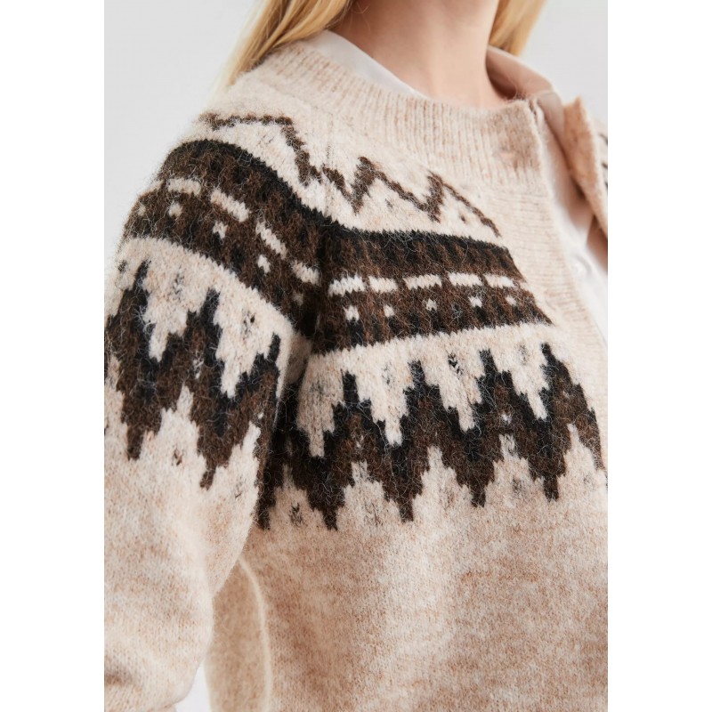 Cárdigan de punto estampado para mujer de cierre de botones, cuello redondo y mangas raglán.