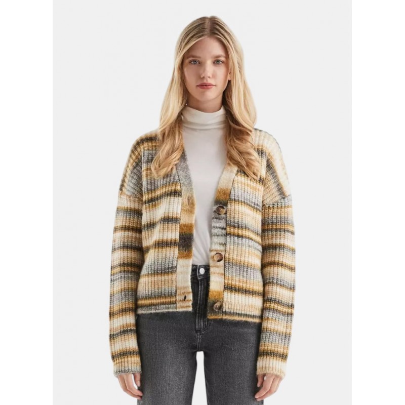 Cárdigan rayas para mujer de cierre de botones, escote en pico y mangas largas.