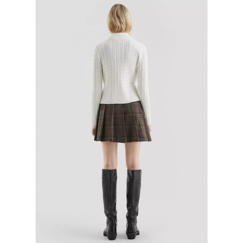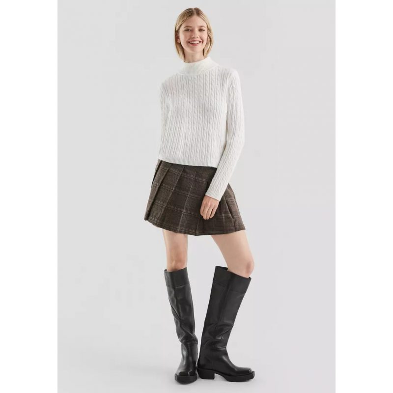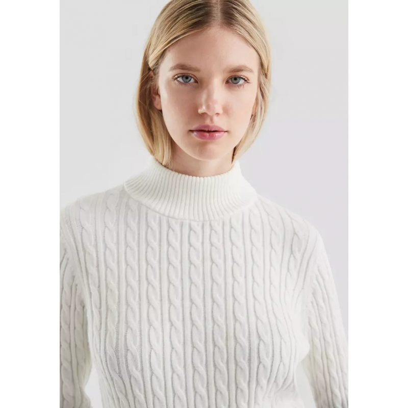 Suéter para mujer de cuello alto, diseño de patrón trenzado y cintura más puños de sus mangas largas acanalados.
