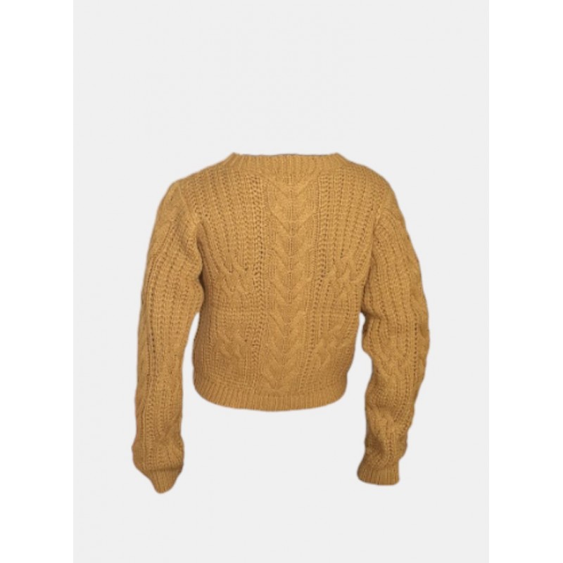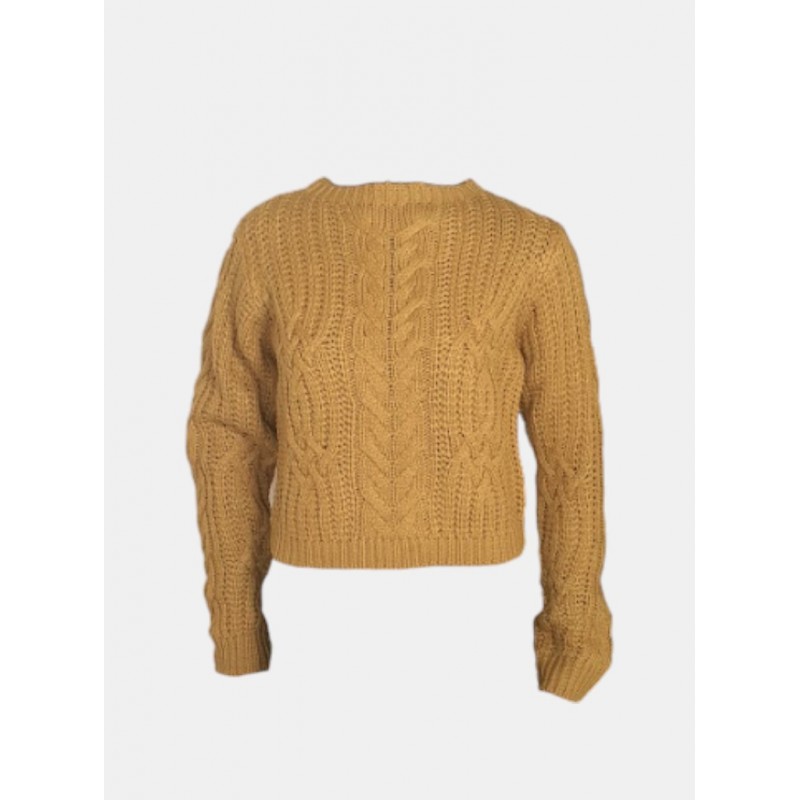 Suéter para mujer de cuello redondo, diseño de punto trenzado y manga larga.