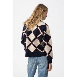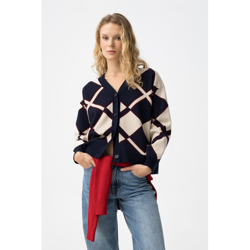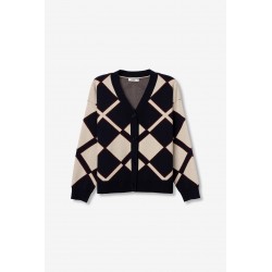 Cardigan de punto para mujer. Con patrón geométrico, corte relajado y mangas largas.