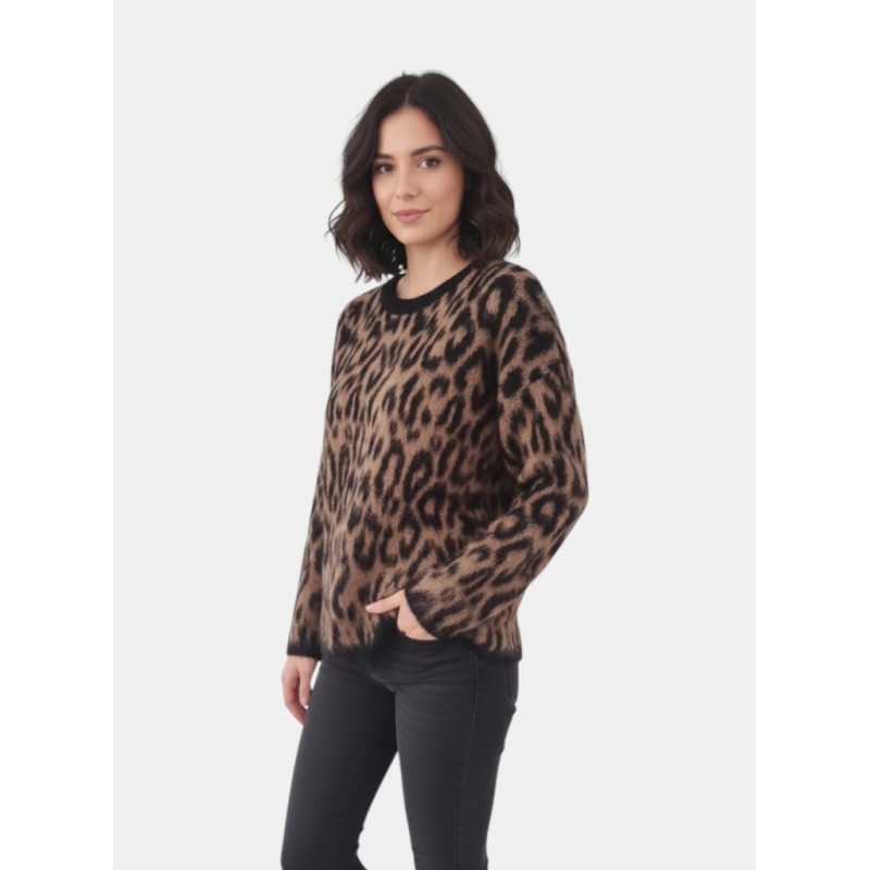 Suéter animal print para mujer de cuello redondo acanalado y mangas largas.