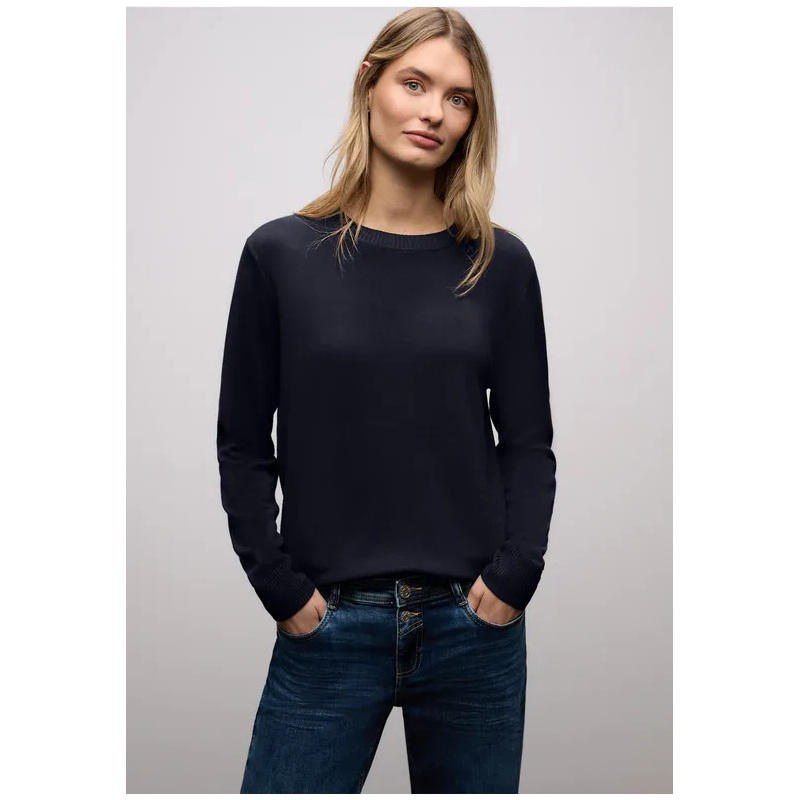 Sueter de punto fino para mujer. Con cuello redondo y mangas largas: una combinación de versatilidad sencilla y comodidad en una suave mezcla de viscosa. Ideal para el día a día o para la oficina, sin resultar recargado. Elige este suéter si buscas una base elegante para tu armario.