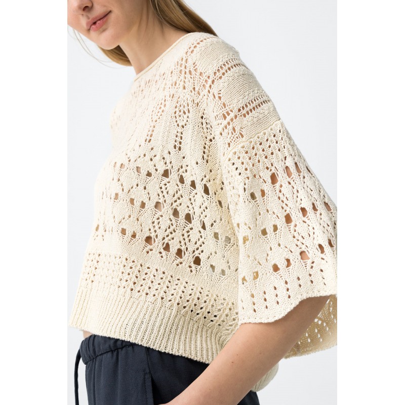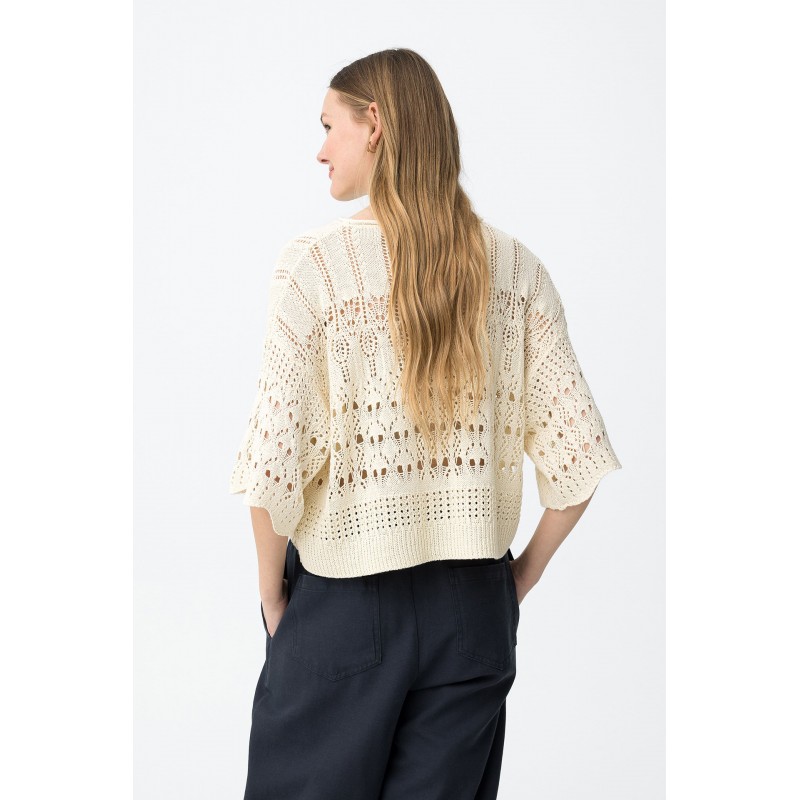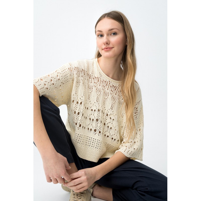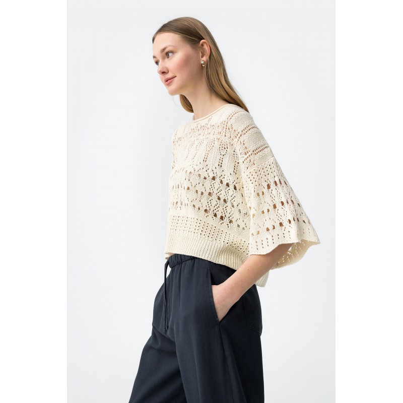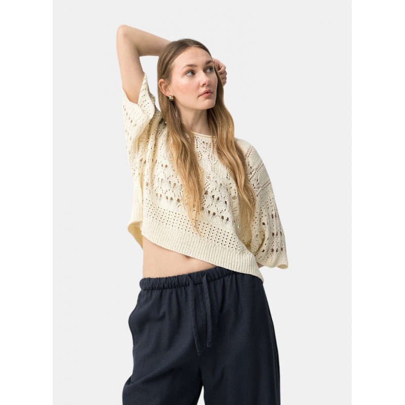 Camiseta beige de punto calado