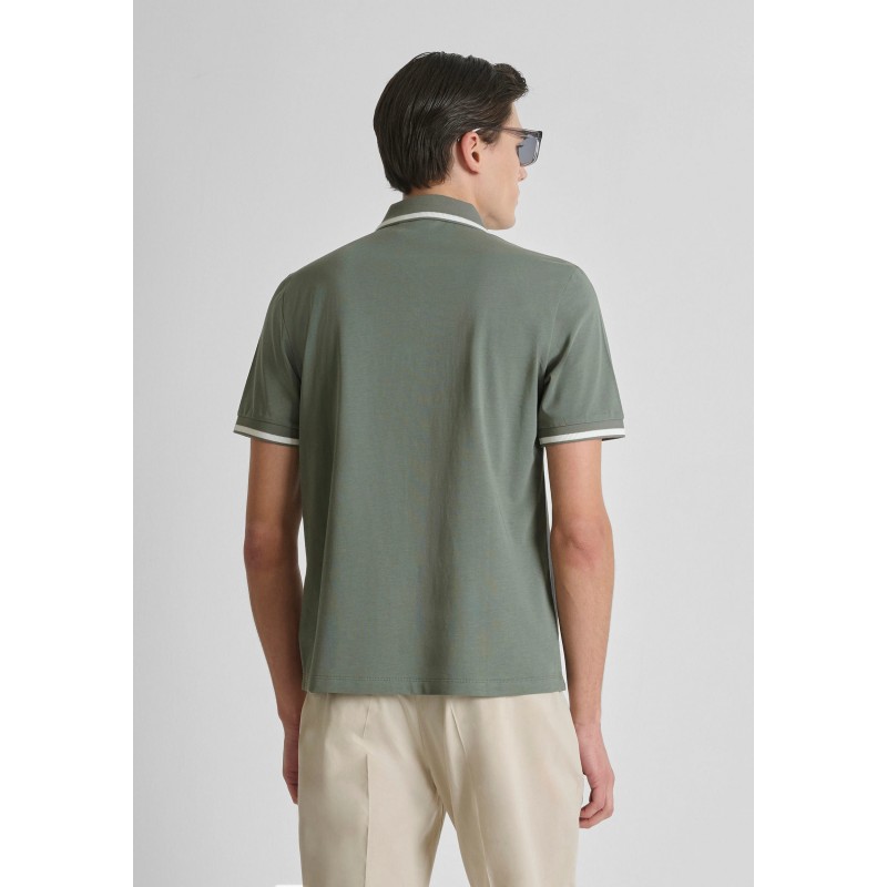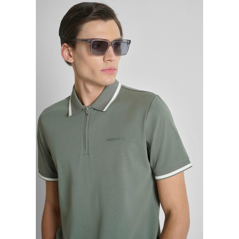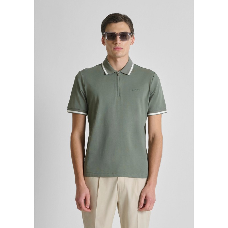Polo piqué para hombre de corte regular de cuello clásico acanalado, cierre de cremallera y el logotipo bordado en el pecho.