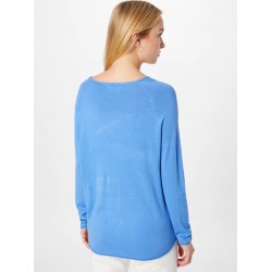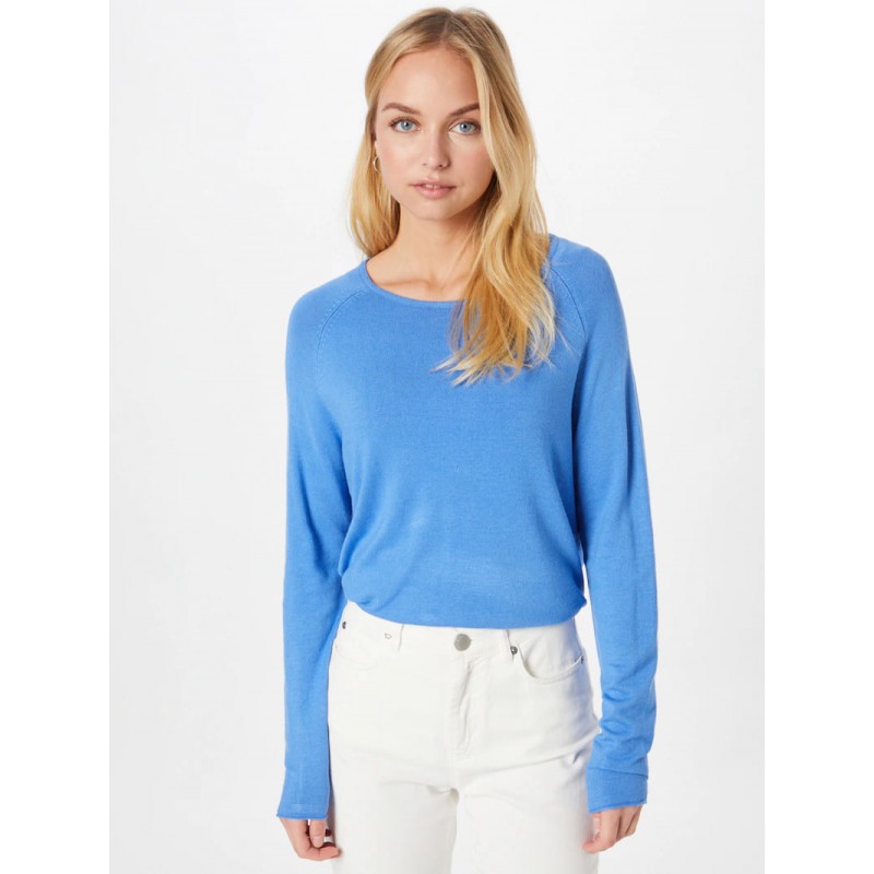 Jersey mujer liso de cuello redondo, dobladillo recto-ondulado y de manga larga.