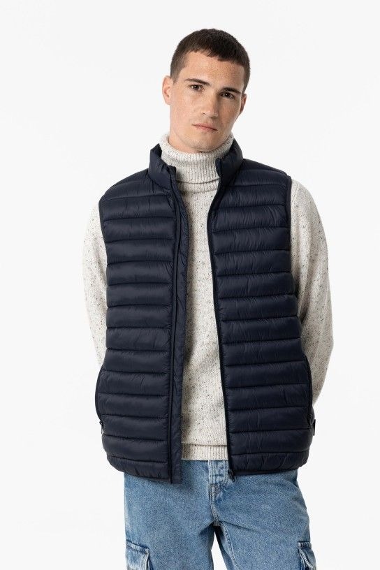Chaleco con cuello subido para hombre.Cierre de cremallera frontal. Bolsillos laterales.