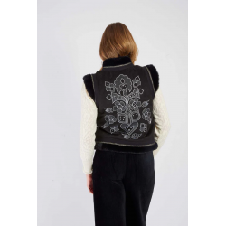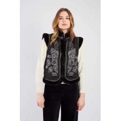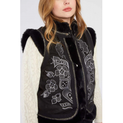 Chaleco reversible para mujer. De piel sintética. Con bordados en la parte delantera y trasera. Perfecto para abrigarse y lucir con estilo.