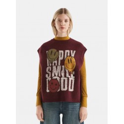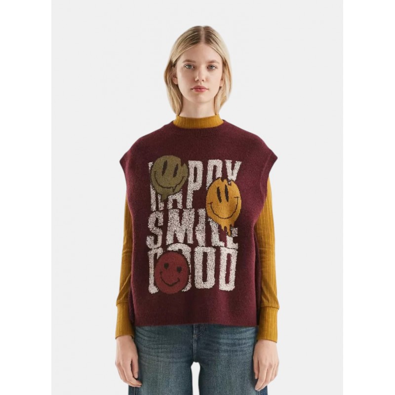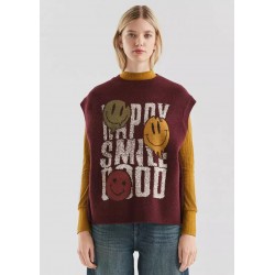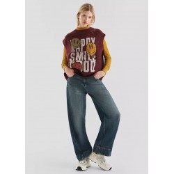 Chaleco holgado para mujer de diseño estampado en la parte frontal y cuello redondo.