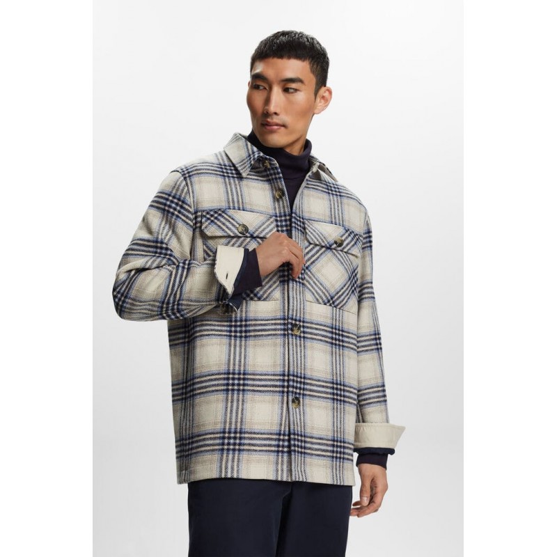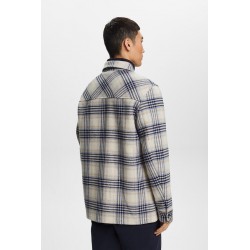 Sobrecamisa a cuadros con un corte normal. Bolsillos abotonados con solapa en el pecho y dos abiertos en los laterales. Puños abotonados.