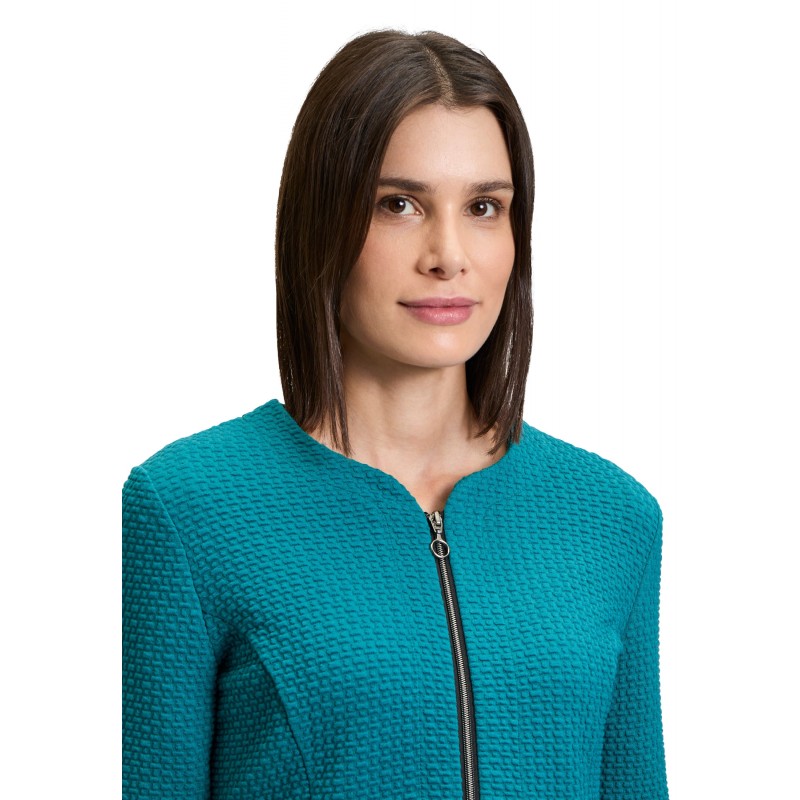 Chaqueta para mujer de cierre de cremallera, bolsillos delanteros con cremallera de detalle de ribete a contraste y mangas largas.